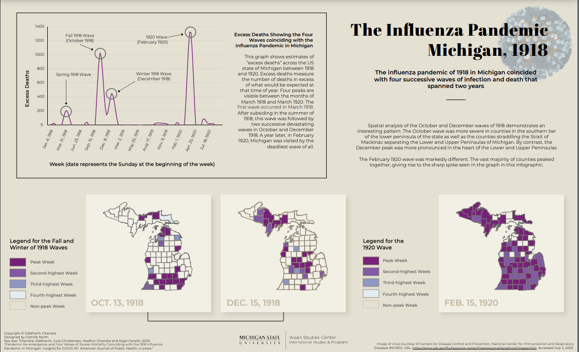 The study tracked excess mortality rates in all 83 counties across Michigan from 1918 to 1920.