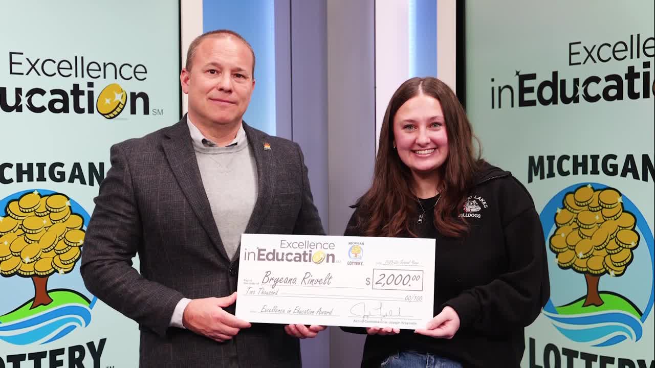 Bryeana Rinvelt was recognized with a $2,000 check from the Michigan Lottery!