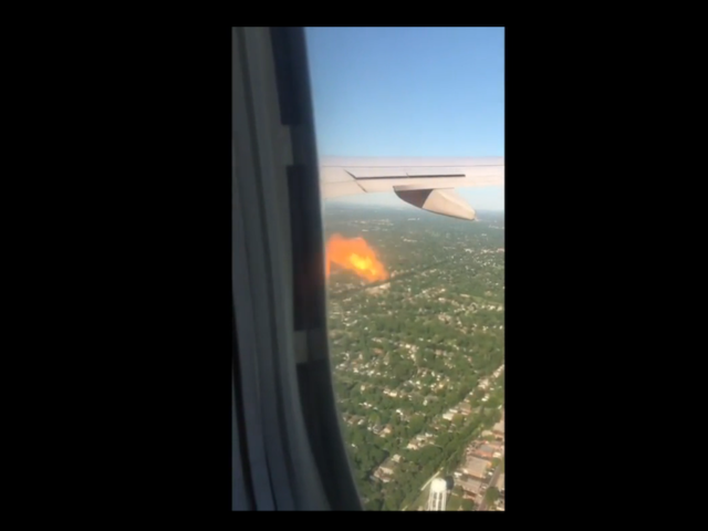 Video shows plane engine on fire mid-flight