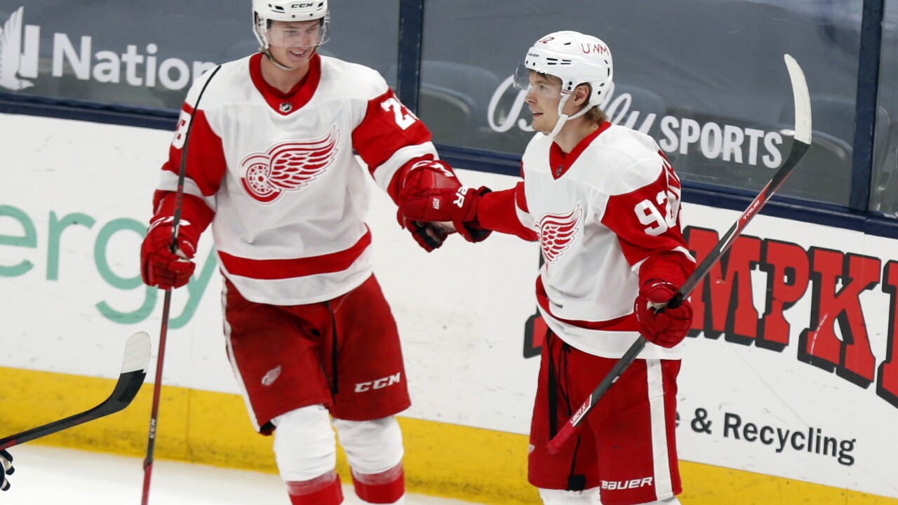 Gustav Lindstrom, Vladislav Namestnikov Red Wings Blue Jackets Hockey